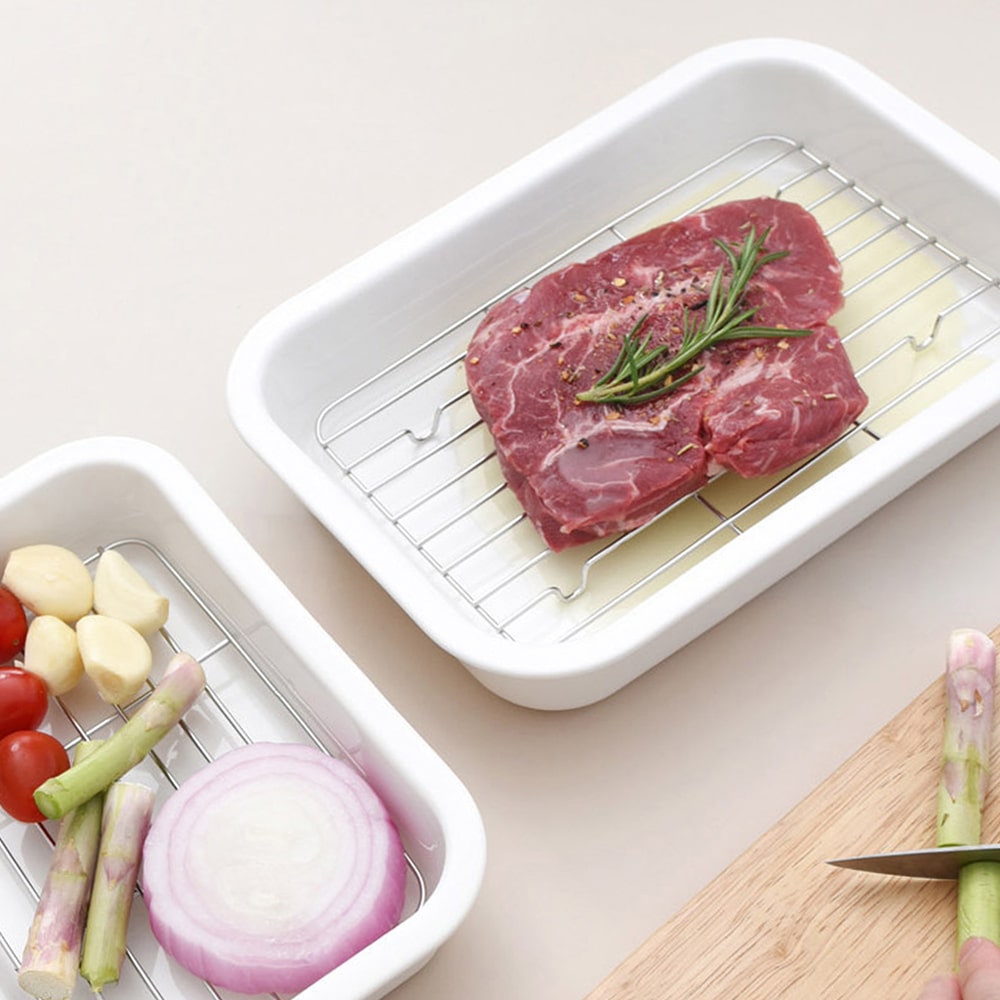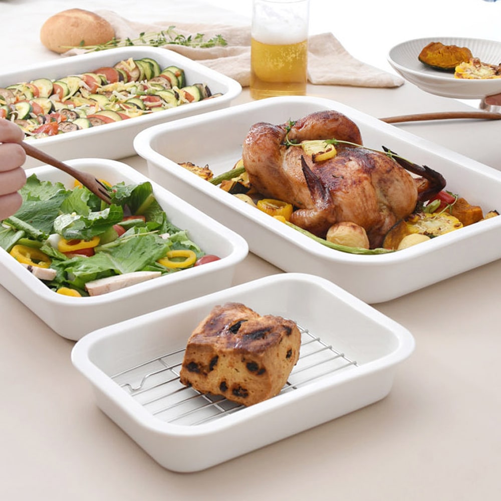 오븐 세라믹 밧드 트레이 세트 (4size) 사각 채반 바트 튀김망 에어프라이어 용기