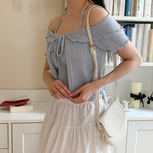 [옷자락] 여자 세일러 카라 프릴 반팔 가디건 홀터 탑 세트