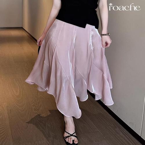 [헬렌]로아체 머메이드 밴딩 스커트 새틴 미디 치마 핑크 봄