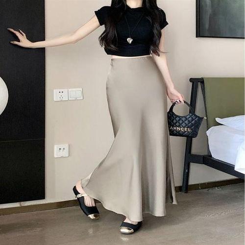 [신상오픈런]여성 하이웨이스트 새틴 머메이드 치마