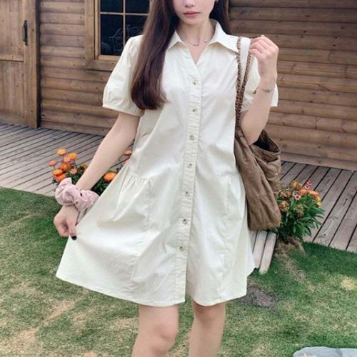 [셀럽하우스]여름 OWCK0310 카라셔츠 원피스 반팔 셔링 슬림 하객룩 골지 미