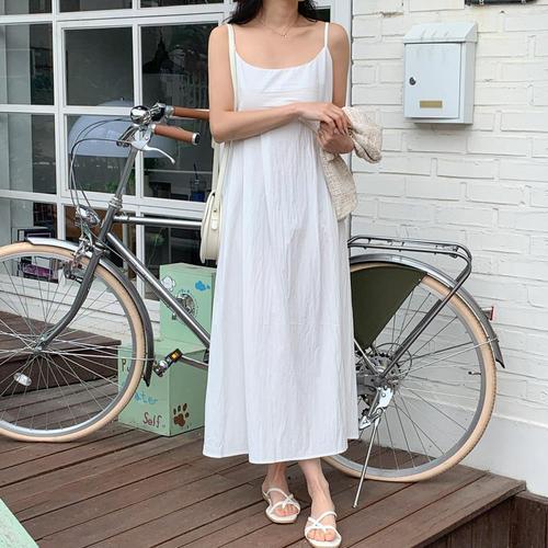 F007275_어깨끈 뷔스티에 셔링 나시 롱원피스