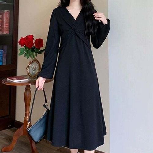 [오너클랜]인기상품 셔링 브이넥 롱원피스 여성 하객룩 데일리드레스 [WFKN9N0_260410]