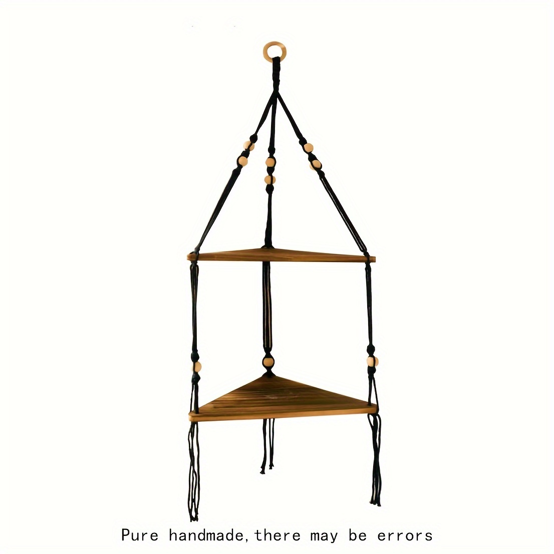 TEMU 침실, 욕실, 거실 및 사무실용 코너 벽 선반 - 스타일로 수제 제작된 2단 나무 직조 플로팅 선반, 화분 및 액자 보관에 적합