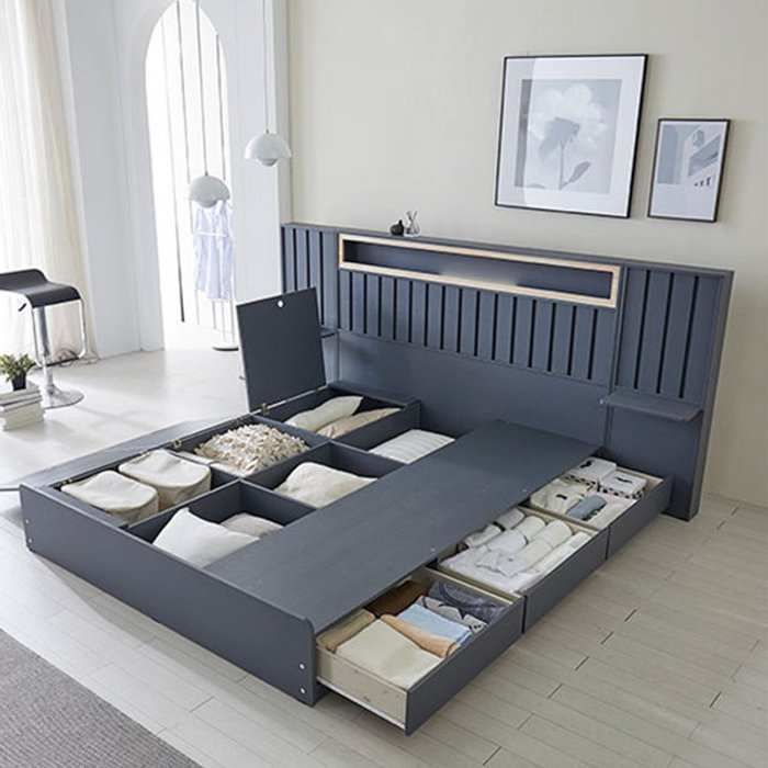 이다네스 수납침대 군나레드 다크그레이 슈퍼킹 180x200cm