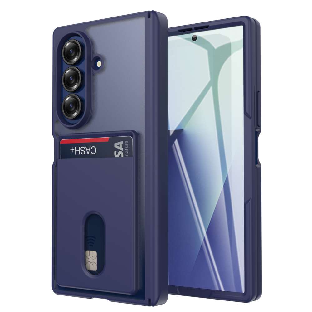 TEMU 휴대폰 케이스 - 센터 축 카드 슬롯 디자인으로 삼성 Z Fold 7에 적합하며, 내구성이 뛰어나고 충격 방지 기능이 있는 스타일리시한 풀 커버 케이스가 특징입니다. 남녀 모두에게 적합합니다.