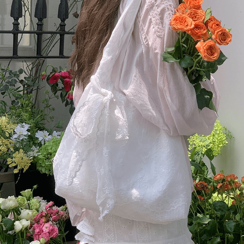 TEMU 한국식 신선한 레이스 플로럴 여성 가방, 대용량, 우아한 요정 숄더 토트백, 출퇴근 및 겨드랑이 휴대에 적합