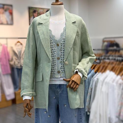 [데일리스트][세정 _인디안여성복]/체크 린넨 자켓MDBFU5M3111_GN_GN