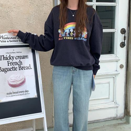 [옷자락] 여자 라운드넥 무지개 스누피 프린팅 맨투맨
