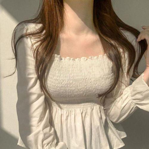 [신상오픈런]여성용 사랑스러운 로맨틱 하객 스타일 스모크 블라우스