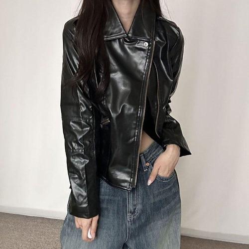 [에이치플러스몰]여성 캐주얼 레더 자켓 편안한 스타일 데이트룩