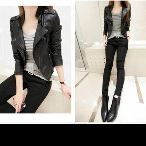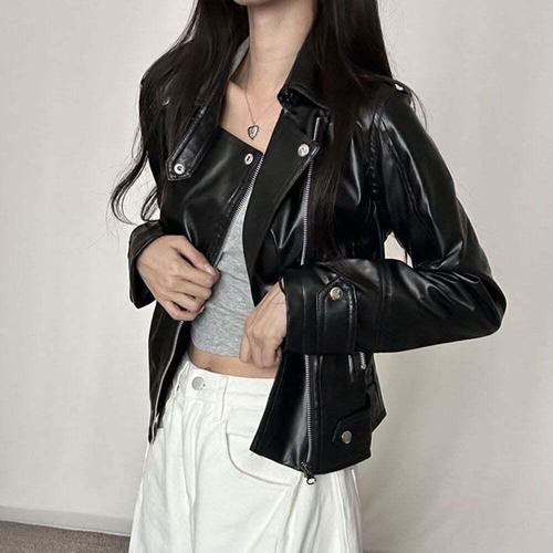 [에이치플러스몰]세련된 블랙 여성 라이더 스타일 가죽 자켓