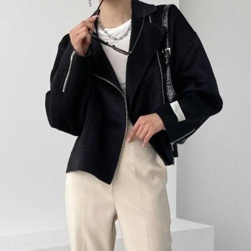 [셀럽하우스]여성 WCFW6143 캐주얼 라이더 스타일 모직 숏 코트