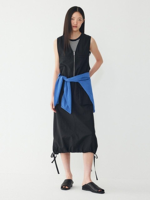 [스튜디오 톰보이] 하프 집업 브이넥 슬리브리스 원피스_블랙 9176241986