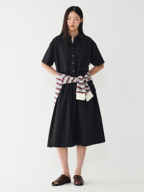 [스튜디오 톰보이] 셔츠 카라넥 반팔 원피스_블랙 91F6241783