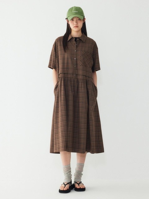 [스튜디오 톰보이] 셔츠 카라넥 반팔 원피스_브라운 91F6241783