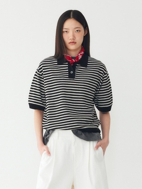 (STUDIO TOMBOY)(대구신세계)스트라이프 카라 넥 반팔 티셔츠 (9176222999CT)