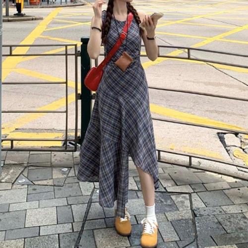 우아한 원피스 언밸런스한 플레어 라인 체크 치마 WFLACVB