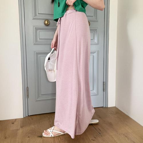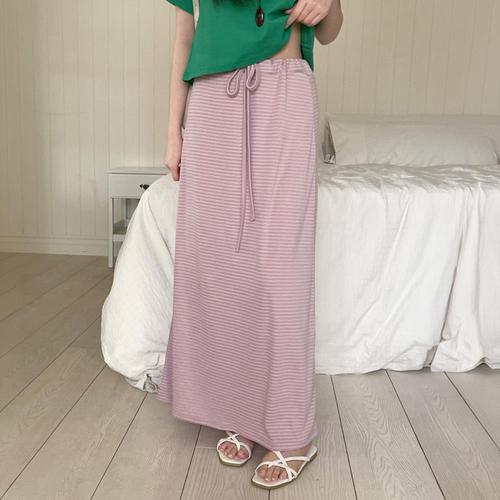 [미라클세븐]여성용 봄여름 경량 스트라이프 스트링 롱 스커트