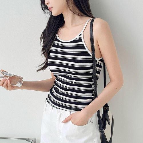 [엄지척]여자 민소매 스트라이프 크롭 나시티 니트나시 2컬러_19613465_667501