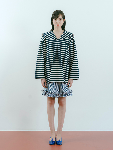 제로스트릿 스트라이프 리본 티셔츠 / 스트라이프 네이비 (ZNSFTS050)