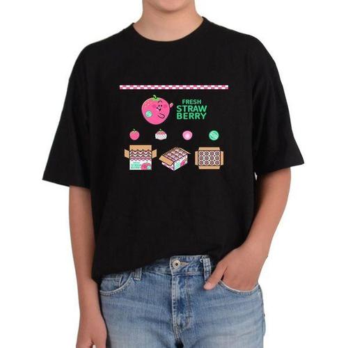 [에이치플러스몰]오바핏반팔티 딸기 과일 가게 농산물시장 포장박스 신선한 그림 모든사이즈