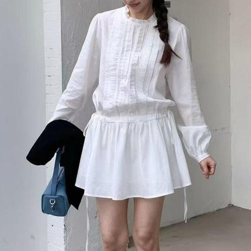 [옷자락]여자 레이스 프릴 스트링 코튼 미니원피스