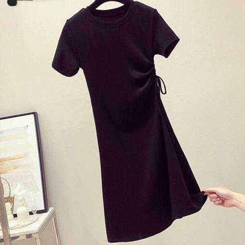 반팔 셔링 라운드 면 원피스 스트링 WFLRZJ0