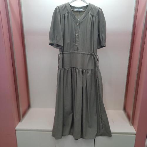 [라티움]Latium HC06 구김없는 앞반오픈 브이넥 반팔 캉캉 A라인 스트링 롱원피스 D2623op02K (49194231)