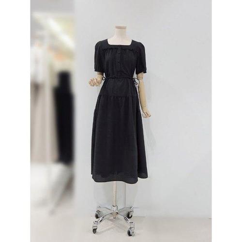 더한땀 루즈핏 바스락 스트링 반팔 롱 원피스
