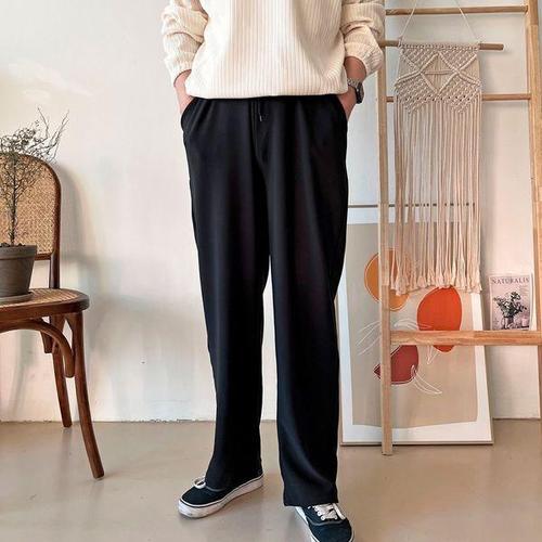 남성 쿨 바지 데일리 스트레이트 슬랙스 와이드 팬츠 밴딩 여름 스판 트레이닝