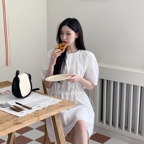 [다잇템]여자 캐주얼 귀여운 허리스토퍼 미디원피스