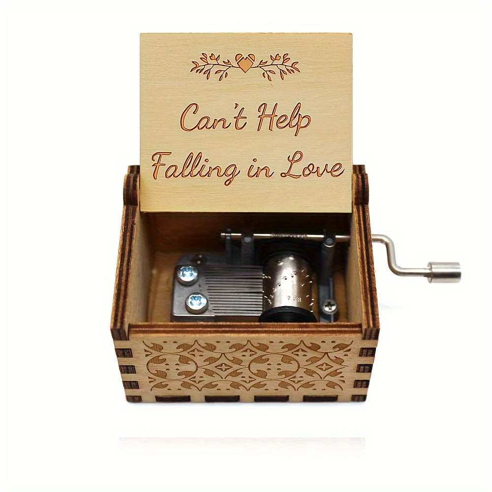 TEMU 나무 수동 핸드크랭크 오르골 1개 "Can't Help Falling in Love" 페인팅 및 조각 오르골, 발렌타인데이 커플 고백 선물