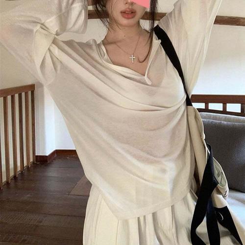 [굿쇼핑몰_의류]커버업 3컬러 시스루 라운드 스퀘어 긴팔티 티셔츠