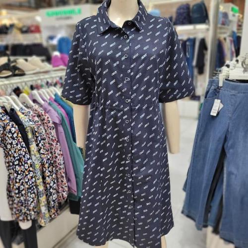 [크로커다일레이디]크로커다일레이디 로고프린트 시원한 시어서커 소재의 풀오픈 반팔 원피스 CLEMOP201_DG