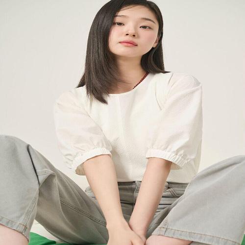 아이보리 짜임 7부소매 시어서커 블라우스 (DLBL5B305IV)