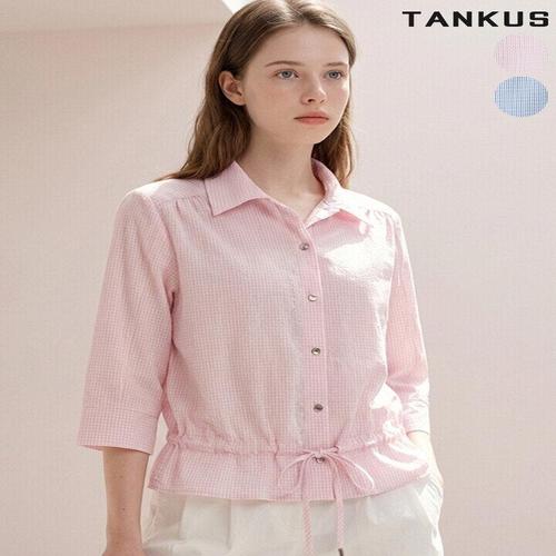[탱커스]여성 쿨 시어서커 리본끈 5부 블라우스