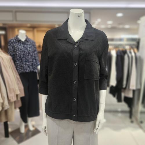 블랙 짜임 7부소매 시어서커 블라우스 (DLBL5B305BK)