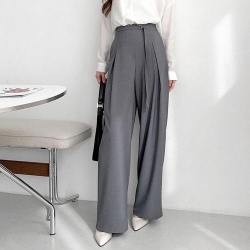[옷자락]여성 와이드 슬랙스 하이웨이스트 버클 정장 출근용