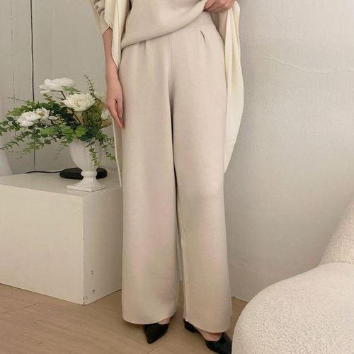 [신상오픈런]여성 두꺼운 와이드핏 울 니트 팬츠 간절기 밴딩 겨울용 바지