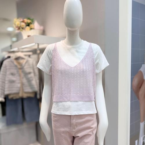 SAHINER 여성 반팔 티셔츠 니트 뷔스티에 레이어드 봄여름 데일리 BTX69