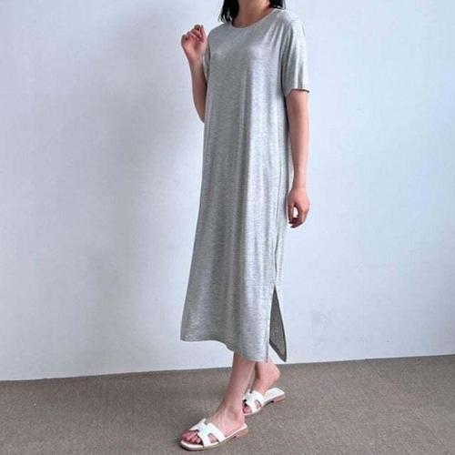 [우일인견] 시원한 여름 쿨 인견 편한 데일리 반팔 롱 여성 원피스