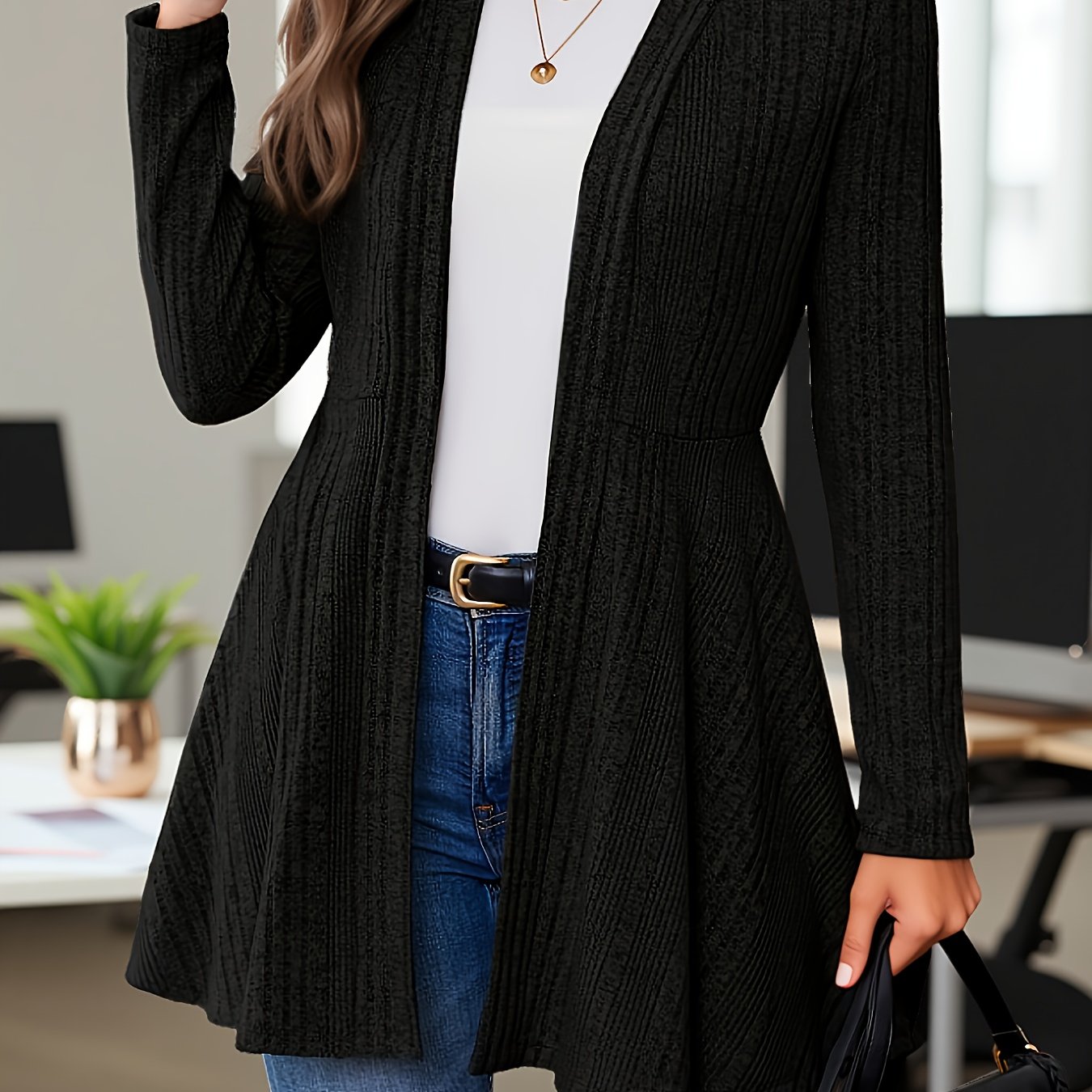 TEMU 여성 캐주얼 골지 원단 단색 긴팔 플레어 코트 여성 롱 블라우스