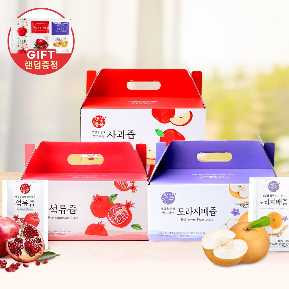 New 햇살듬뿍 사과즙 도라지배즙 석류즙 100mlx30포 세트+2포 추가 증정