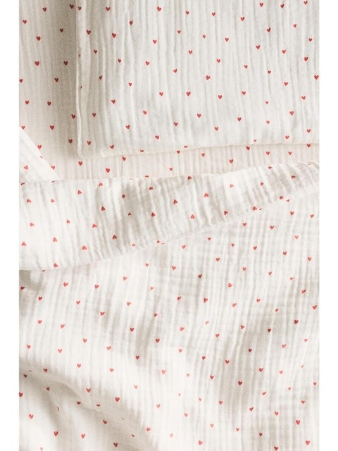 [에이치엔엠] 모슬린 아기 침대 이불커버 & 베개커버 화이트/하트 1311567001
