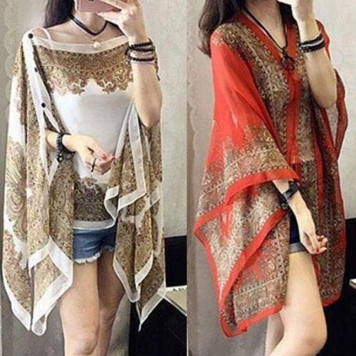 에스닉 쉬폰 케이프 블라우스 숄시스루 블라우스 WFIN6AR