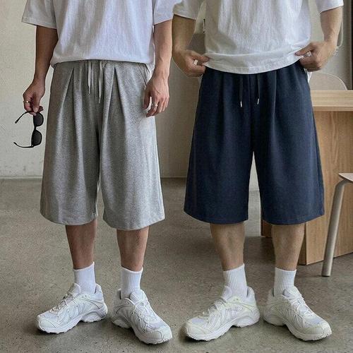 [쿼터]1+1 남자 버뮤다팬츠 사이드 절개 핀턱 7부 밴딩 여름 트레이닝 반바지