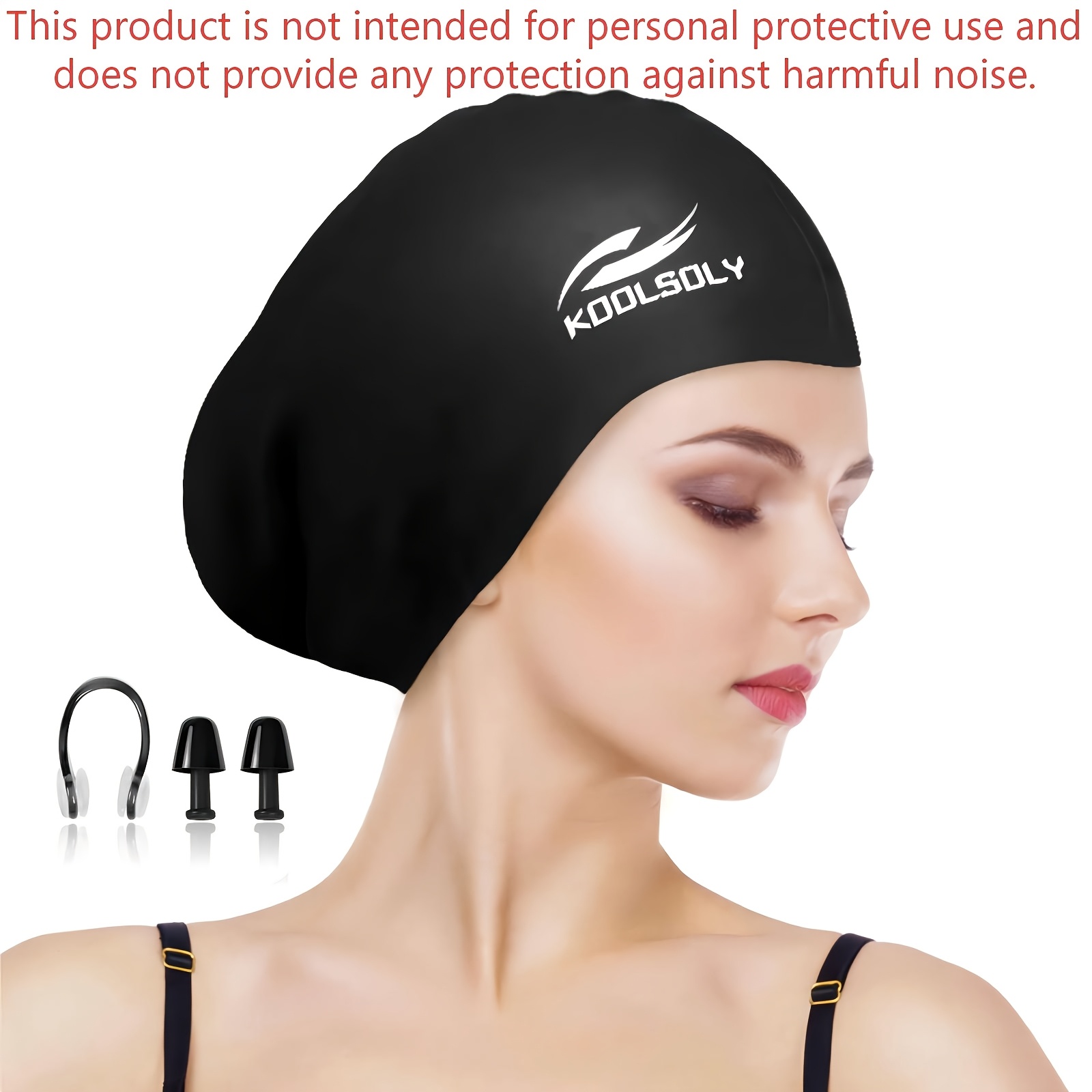 TEMU 귀 보호 기능이 있는 수영 모자, 긴 머리용 실리콘 훈련 장비. 귀마개 및 코 클립이 포함된 수영 용품
