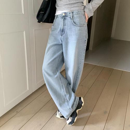 [다잇템]여자 아이스워싱 하이웨이스트 넓은 진 팬츠
