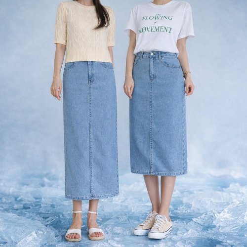 슬림한 라인 뒤트임 아이스 데님스커트(숏기본)